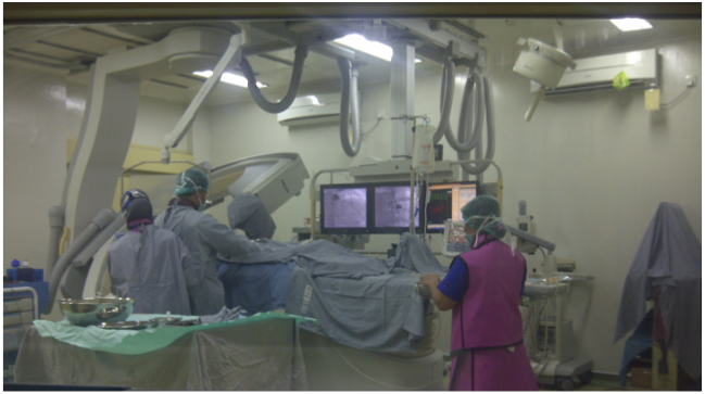 Pada bulan Desember 2012 ini, saya mendapatkan kehormatan dengan diundang untuk melakukan tindakan kateterisasi otak atau yang disebut dengan “Endovascular Neurosurgery / Neuro Intervensi” di kota Medan. Tindakan ini merupakan kekhususan keilmuan bedah saraf yang sempat saya pelajari di Jepang pada tahun 2011. Saya mendapatkan undangan dari seorang dokter spesialis bedah saraf disana, Dr. dr. Ridha Dharmajaya, SpBS, dimana beliau juga adalah senior saya selama menjalani pendidikan bedah saraf di Departemen Bedah Saraf FKUI-RSCM dulu. Sebanyak 7 pasien dapat beliau kumpulkan dan terima untuk menjalani tindakan kateterisasi otak tersebut. Sebagian besar dari pasien-pasien tersebut datang dengan keluhan kelumpuhan akibat serangan stroke yang sudah diderita beberapa hari hingga beberapa minggu sebelumnya. Keluhannya bervariatif namun sebagian besar datang dengan kelumpuhan satu sisi tangan dan kaki. Ada juga dengan keluhan sulit berbicara hingga “cadel”. Tindakan kateterisasi ini saya tujukan untuk melihat dengan jelas struktur pembuluh darah otak dan mencari pembuluh darah otak yang mengalami sumbatan tersebut.